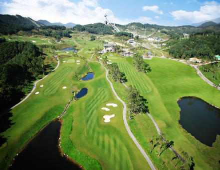 해발 약 700m에 위치한 휘닉스파크 GC는 여름 평균 기온이 23℃로 시원합니다. 잭 니클라우스 설계의 전략적 코스와 리조트형 부대시설이 어우러져 가족 단위 골프 여행지로도 인기입니다.